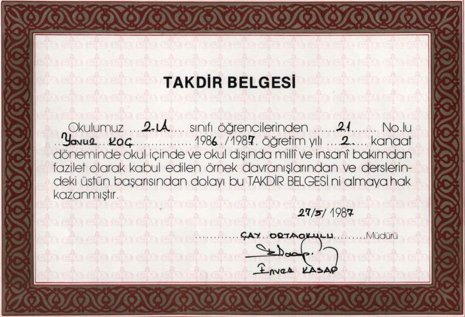 17 Mayıs 1974 de İstanbul’da doğmuşum. Rize/Çayeli’ndenim. Samsun 19 Mayıs Üniversitesi Eğitim Fakültesi Matematik Öğretmenliği bölümünü 1997 yılında bitirdim ve o yıl ekim ayında Rize Anadolu İmam-Hatip Lisesinde göreve başladım.